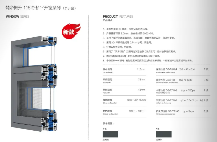 型号:梵帝振升115断桥平开窗系列(外开窗)