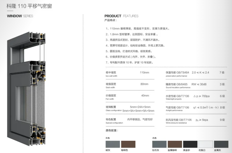 1、110mm窗框厚度,高强度不变形,支撑力更强大。